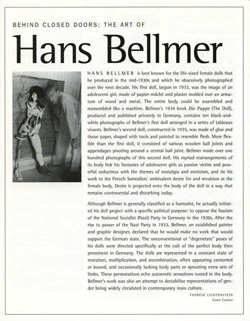 | [Hans Bellmer] Behind Closed Doors: The Art of Hans Bellmer (2001) Exhibition Pamphlet $14.00 |